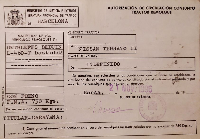 IMPORTANTE: Si la caravana es posterior a septiembre de 1986, deberá llevar placa del fabricante con contraseña de homologación. Para las caravanas anteriores a esa fecha, no es necesaria dicha placa.